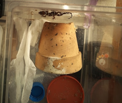 ボウシトカゲモドキcb-2024, 30cm程度長の入れ物に3匹同居で入れたら